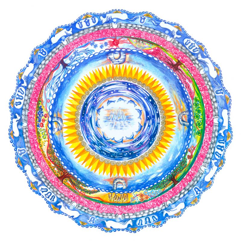 Mandala Poznej svůj cíl - deska (Ø70cm) Zdeňka Jordánová Plastová deska s vysoce odolným nátiskem (vodě i slunci odolná), s háčkem průměr 70 cm 2016