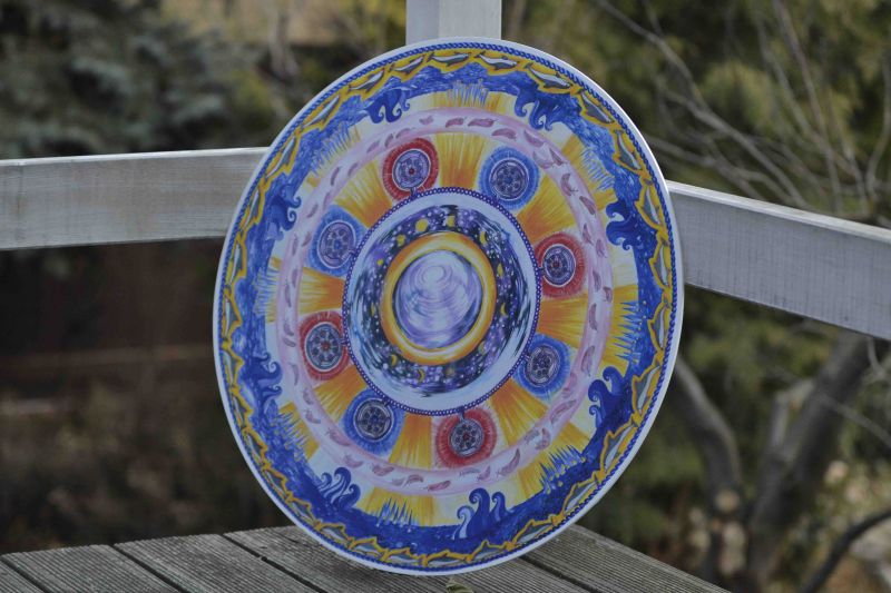 Mandala Kouzelnická - "přací" - deska (Ø70cm) Zdeňka Jordánová Plastová deska s vysoce odolným nátiskem (vodě i slunci odolná), s háčkem průměr 70 cm 2017Uvedené ceny jsou koncové a s DPH.