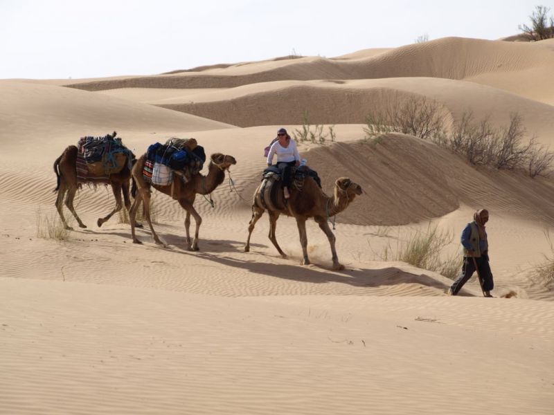 Slunce je rozžhavené a písek na zemi také. Vše splývá v jednu žlutou barvu, která v různých odstínech zaplňuje všechno kolem. Písek, písek…, v milionech tvarů, zakulacených i ostrých. Místy vykukují skály, též obalené nafoukaným pískem. Vysoké duny písku tvoří úzký kaňon, kterým právě prochází karavana.